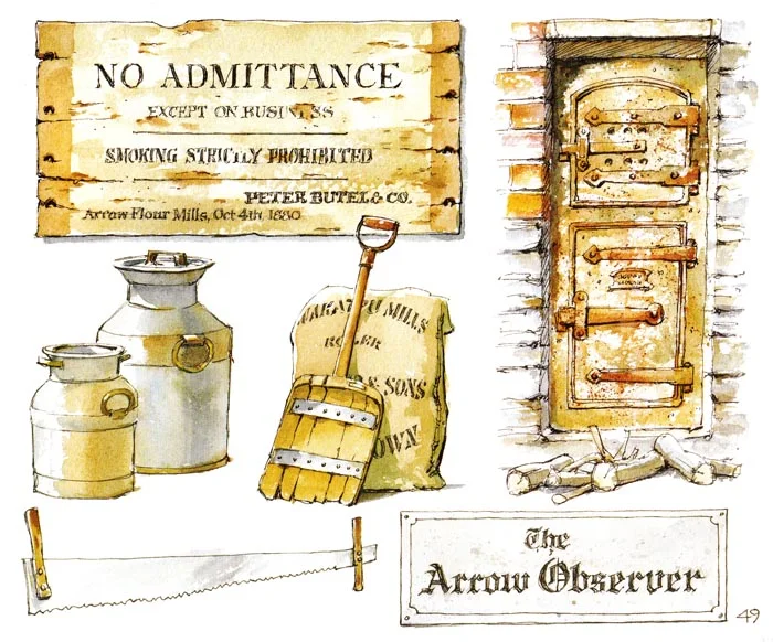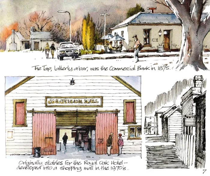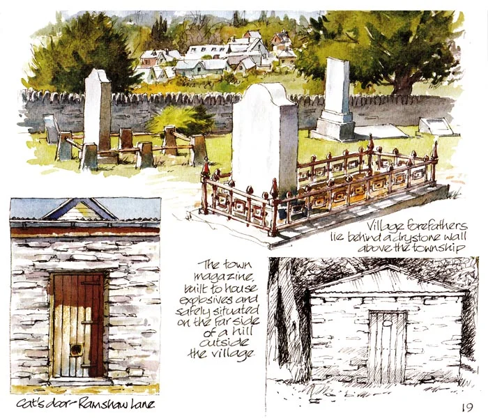 A 52 page book of watercolour and pen drawings that reflect the artist's fascination with the history and environment of the mining village of Arrowtown.